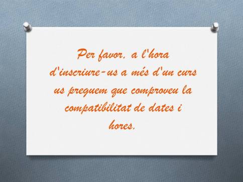 Dates i horari: [DUES CONVOCATÒRIES]